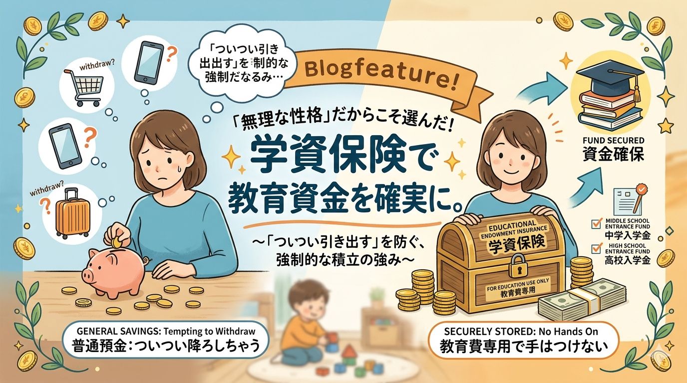 私のように、途中で降ろさない自信がないタイプには、現金で積み立てるよりも、学資保険のように仕組みで守られる方法の方が合っていました。